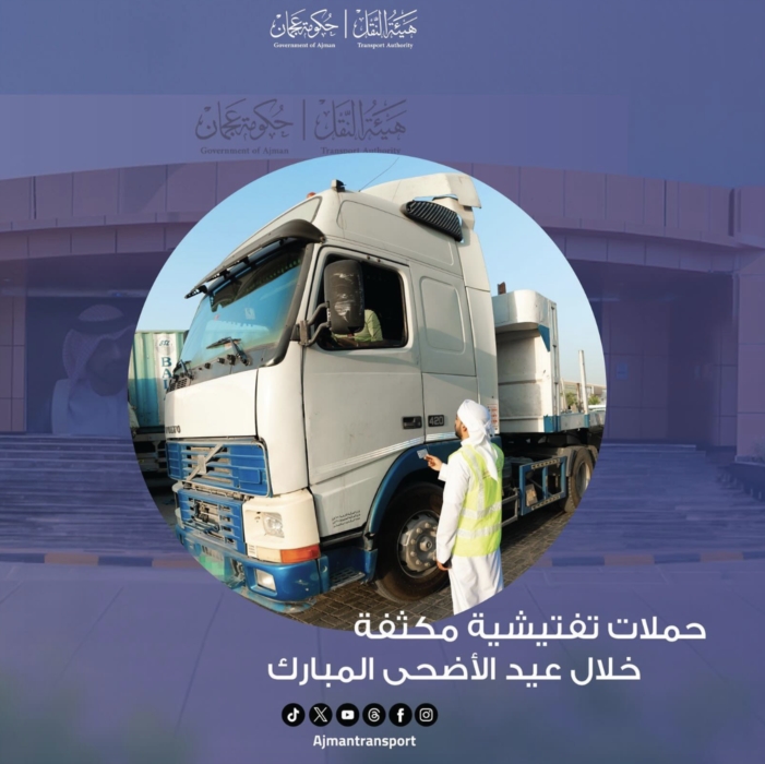 نفذت هيئة النقل في عجمان حملات تفتيشية خلال عيد الأضحى المبارك، وذلك بناء على خطة إدارة التصاريح وأنظمة النقل لتغطية معظم المناطق داخل الامارة، شملت عدة مناطق منها الكرامة، النعيمية، صناعية الجرف، الصناعية الجديدة، والبستان. هدفت هذه الحملات إلى الحد من ظاهرة النقل غير المشروع وتنظيم حركة حافلات النقل العام ومركبات الأجرة لضمان أمن وسلامة الركاب.